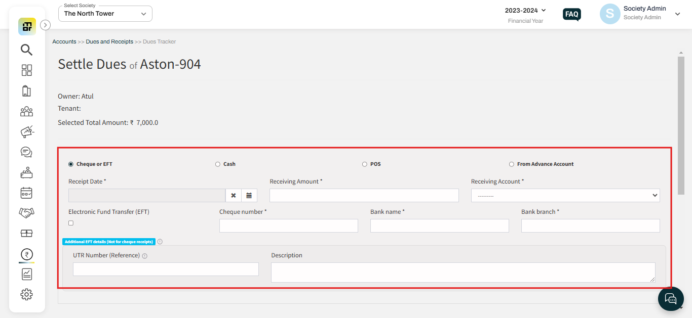 Mygate allows residents to make payments directly through the Mygate Resident App. However, for payments made outside the app (such as via EFT, cash, cheque, etc.), the Society Admin can manually record and issue receipts through the Admin Dashboard.