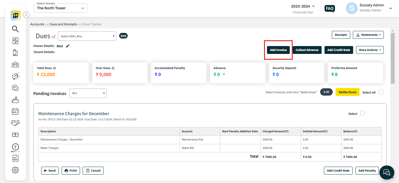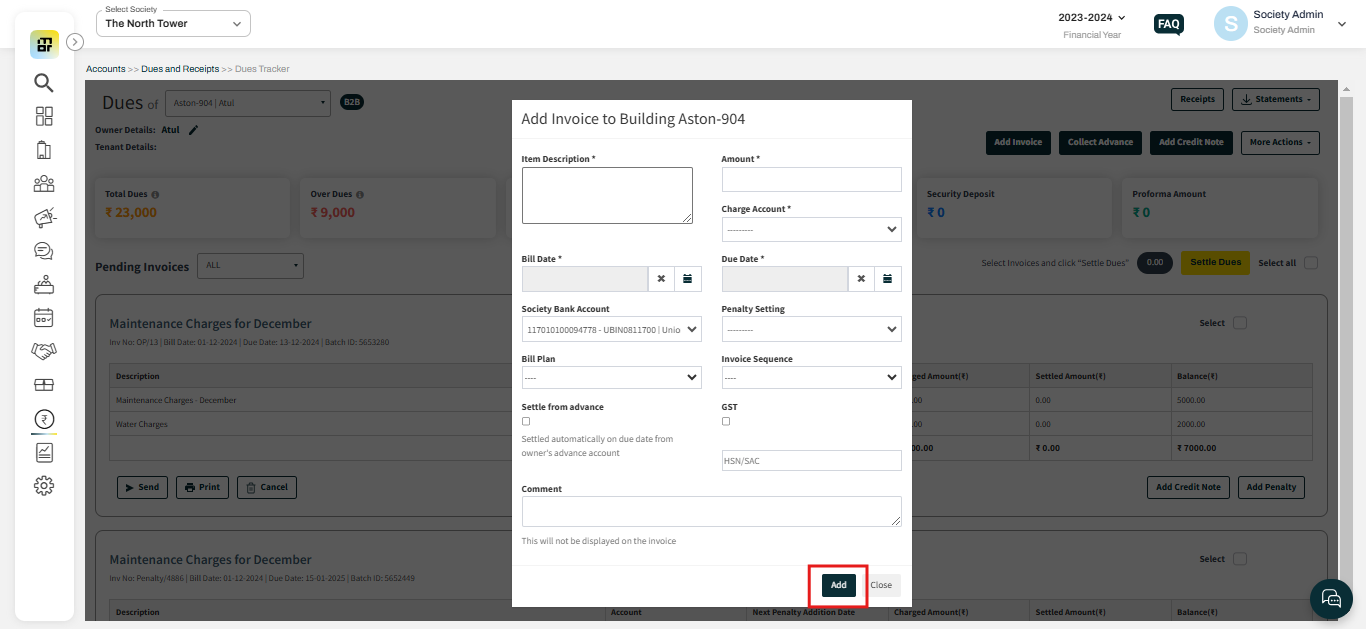 In order to raise an invoice for a single flat, please refer to the steps below:
