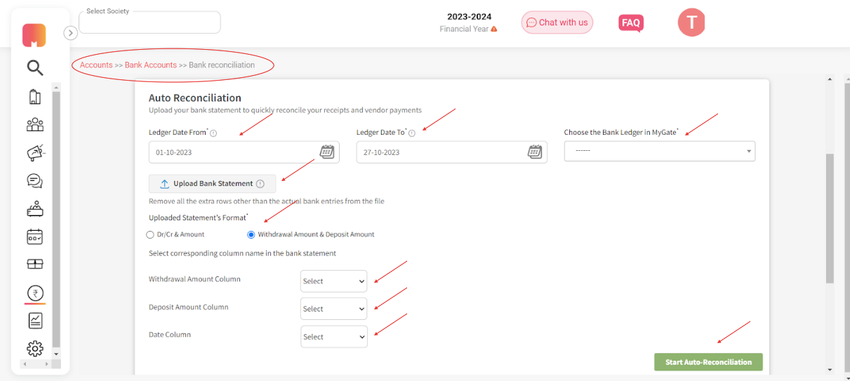 Keep the actual bank account statement ready in Excel format (.csv or .xlsx)