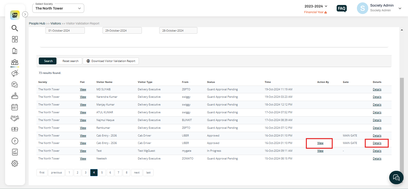 In Mygate, when a security guard records the entry or exit of a visitor for any flat, the respective resident receives a notification and can approve or deny the entry directly through the app. In cases where the resident does not respond, the guard has the authority to manually allow or deny entry based on the situation. Additionally, the Society Admin has access to view who approved a particular visitor's entry, ensuring accountability and transparency in visitor management.