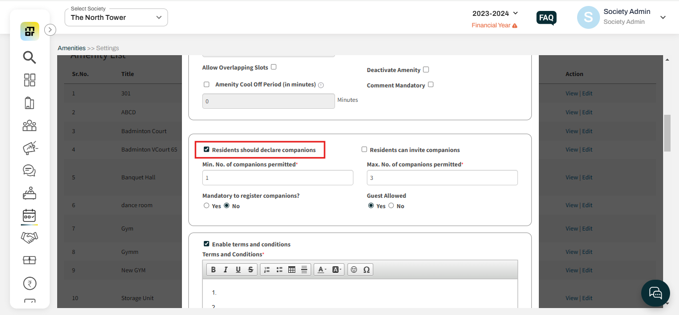 2. Click on "Residents should declare companions" then enter the necessary details and update.