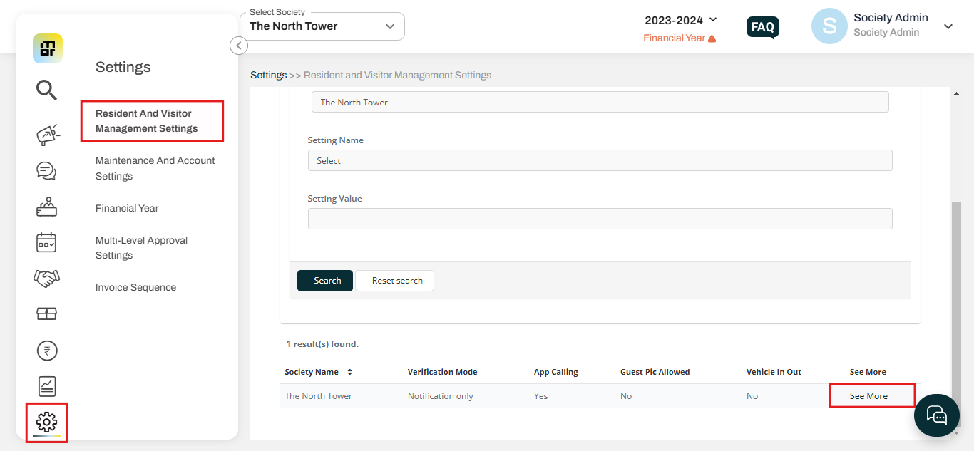 1. Click on "View more" under the Resident and Visitor Management Settings section of settings.