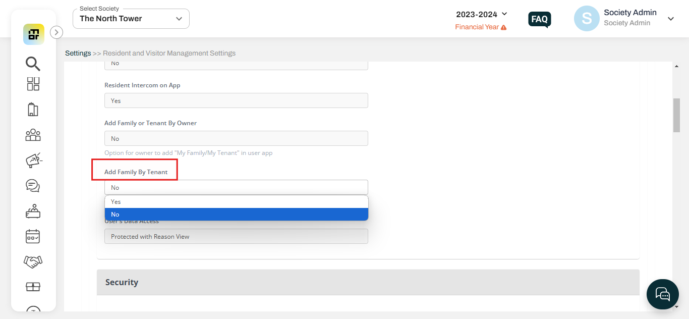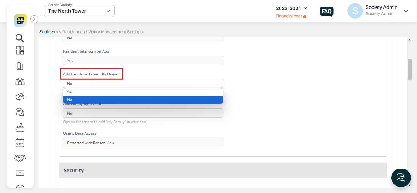 Kindly refer to the steps below to restrict owners and tenants from adding family to the resident application.