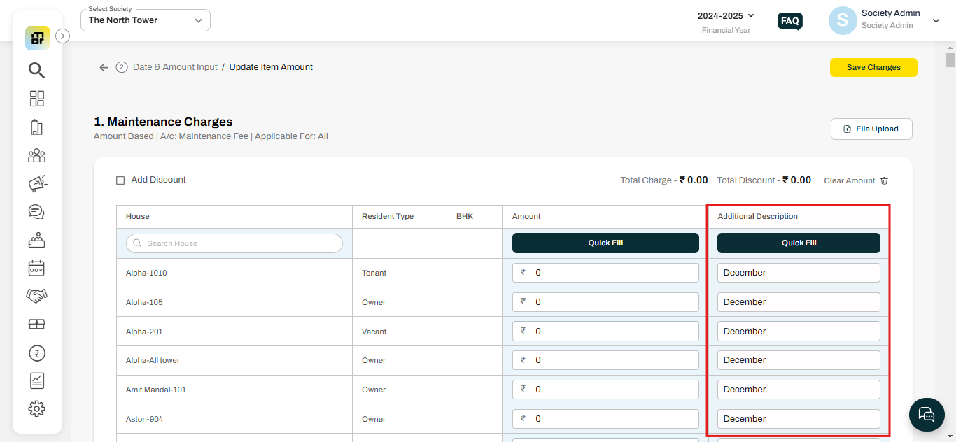 5. Click on the Quick Fill option to bulk upload the description of all flats together.