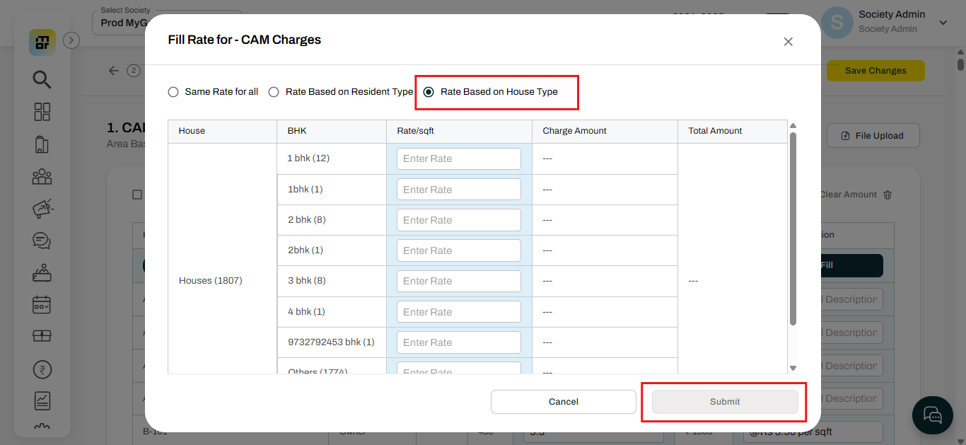 Amount Based on House Type: Set the amount based on the house type. For example, 1BHK, 2BHK, and 3BHK can have different amounts.