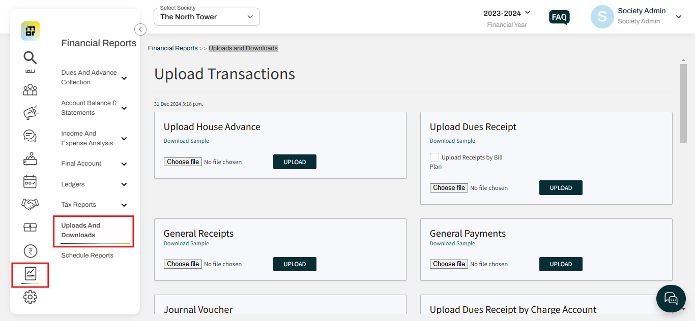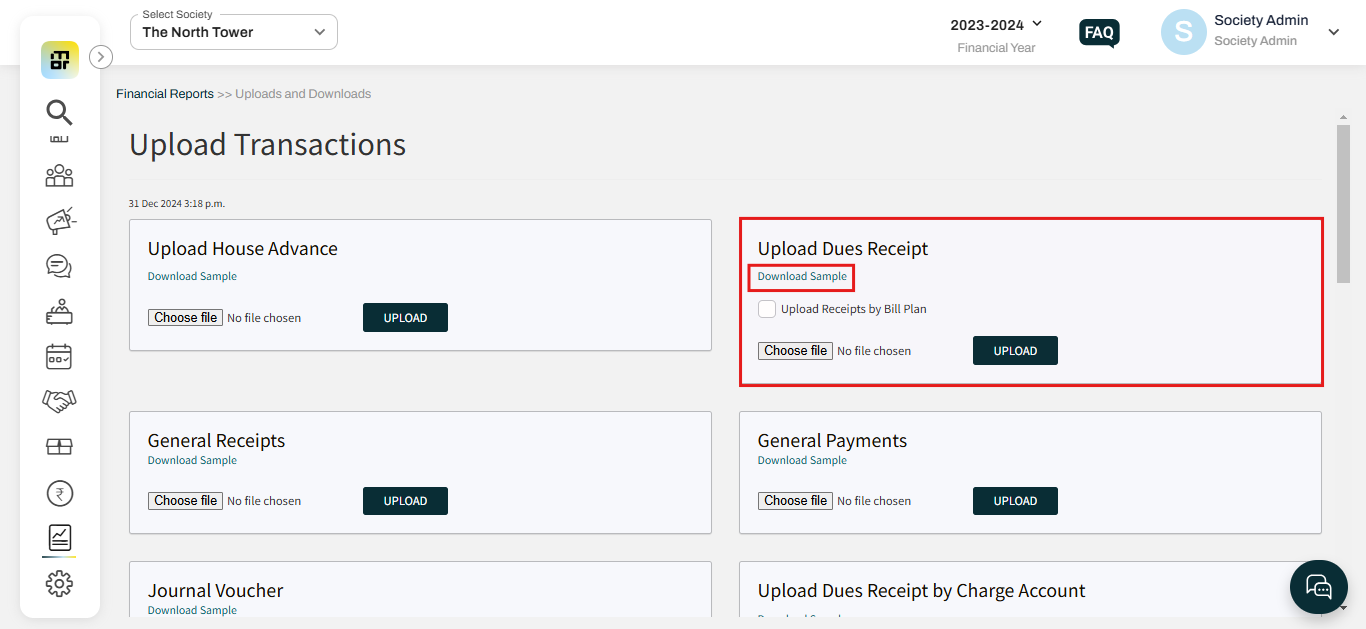 2. Download the sample file from the Uploads Dues receipt, fill in the relevant details, and upload.
