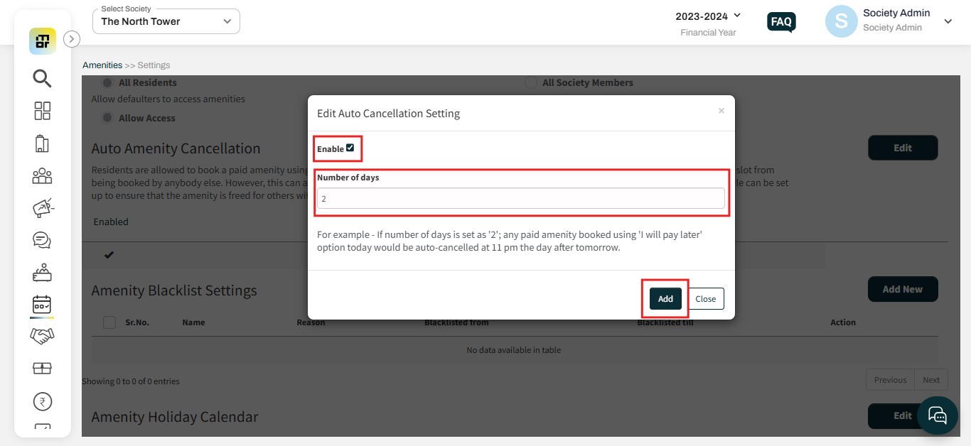 Residents are allowed to book a paid amenity using the 'I will pay later' option if they want to make the payment at a later date and not immediately. This blocks their desired slot from being booked by anybody else. However, this can also lead to delayed payments or last-minute cancellations without any payment. Auto-cancellation rules can be set up to ensure that the amenity is freed for others within time. Please refer to the below steps to configure Auto Amenity Cancellation for all the Amenity.