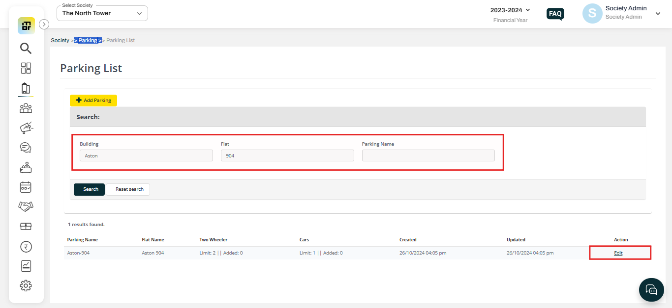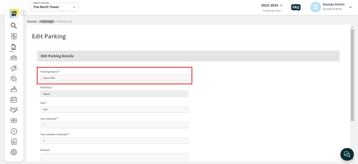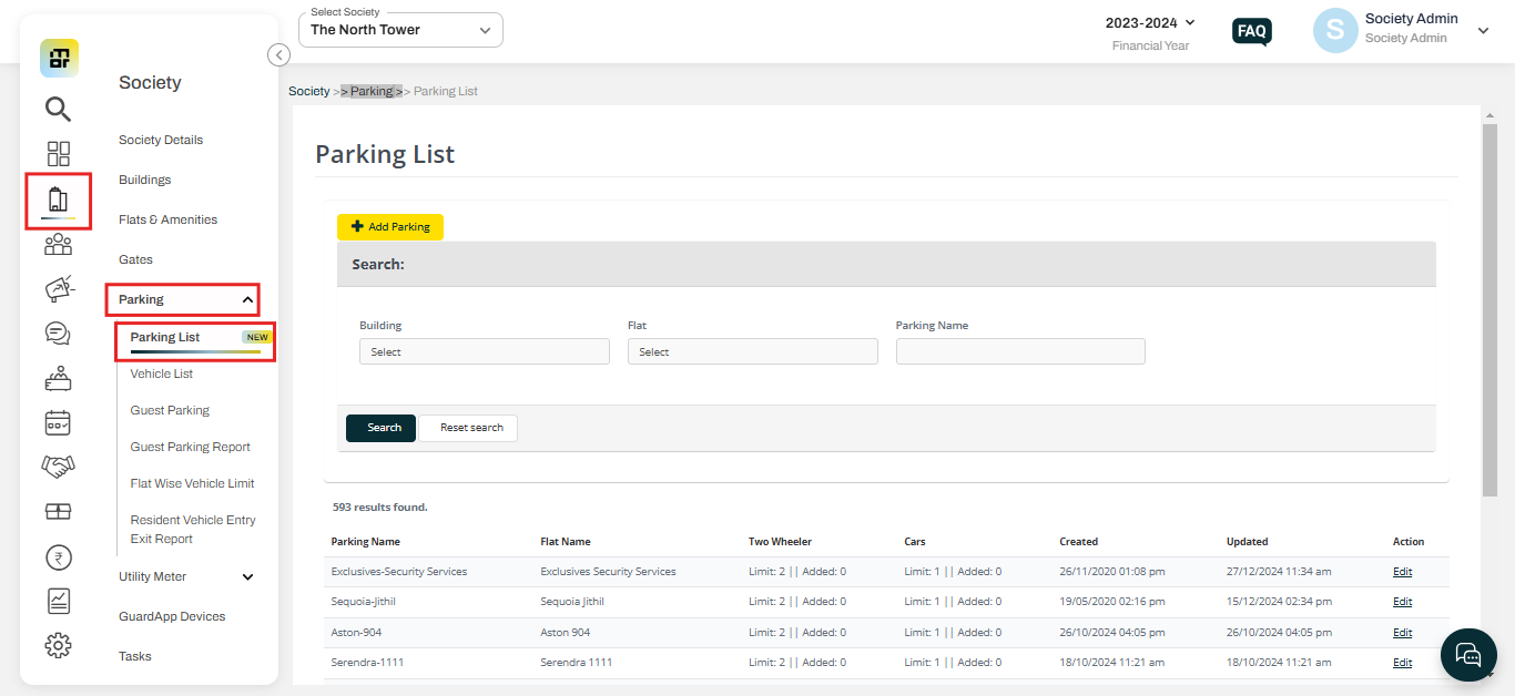 Mygate offers a feature that enables societies to update the parking slot name associated with a flat, making vehicle management more efficient. This ensures that parking assignments are accurate and up-to-date, helping to eliminate issues such as incorrect or outdated parking allocations.