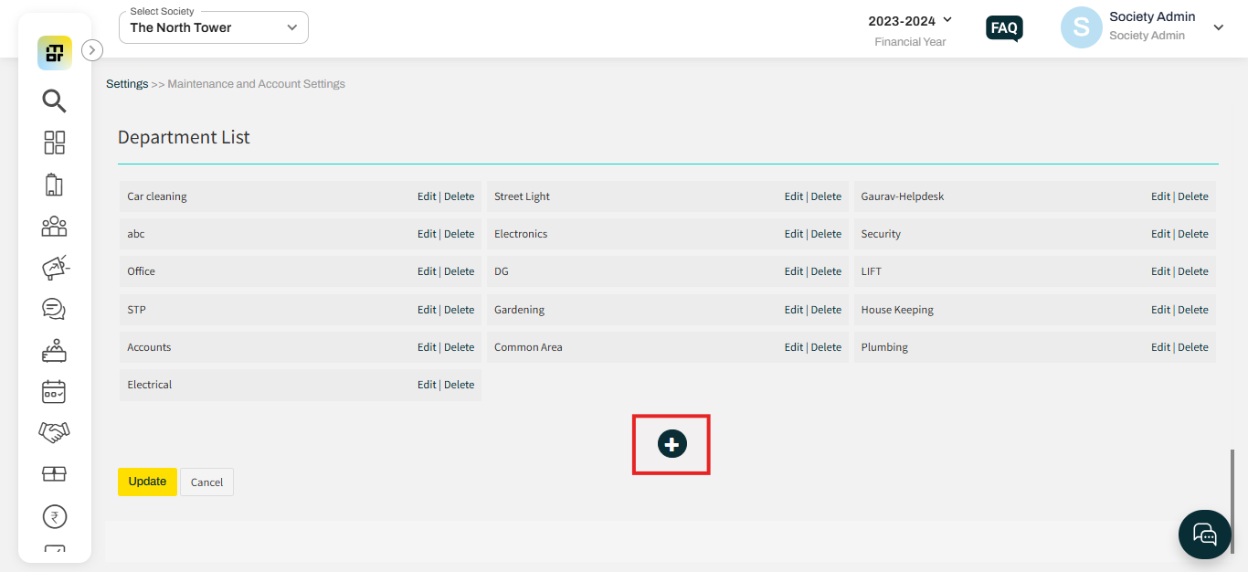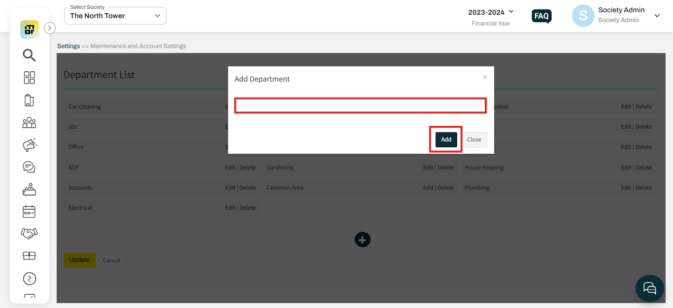 2. Click on the (+) icon to add a new department under the Department list.