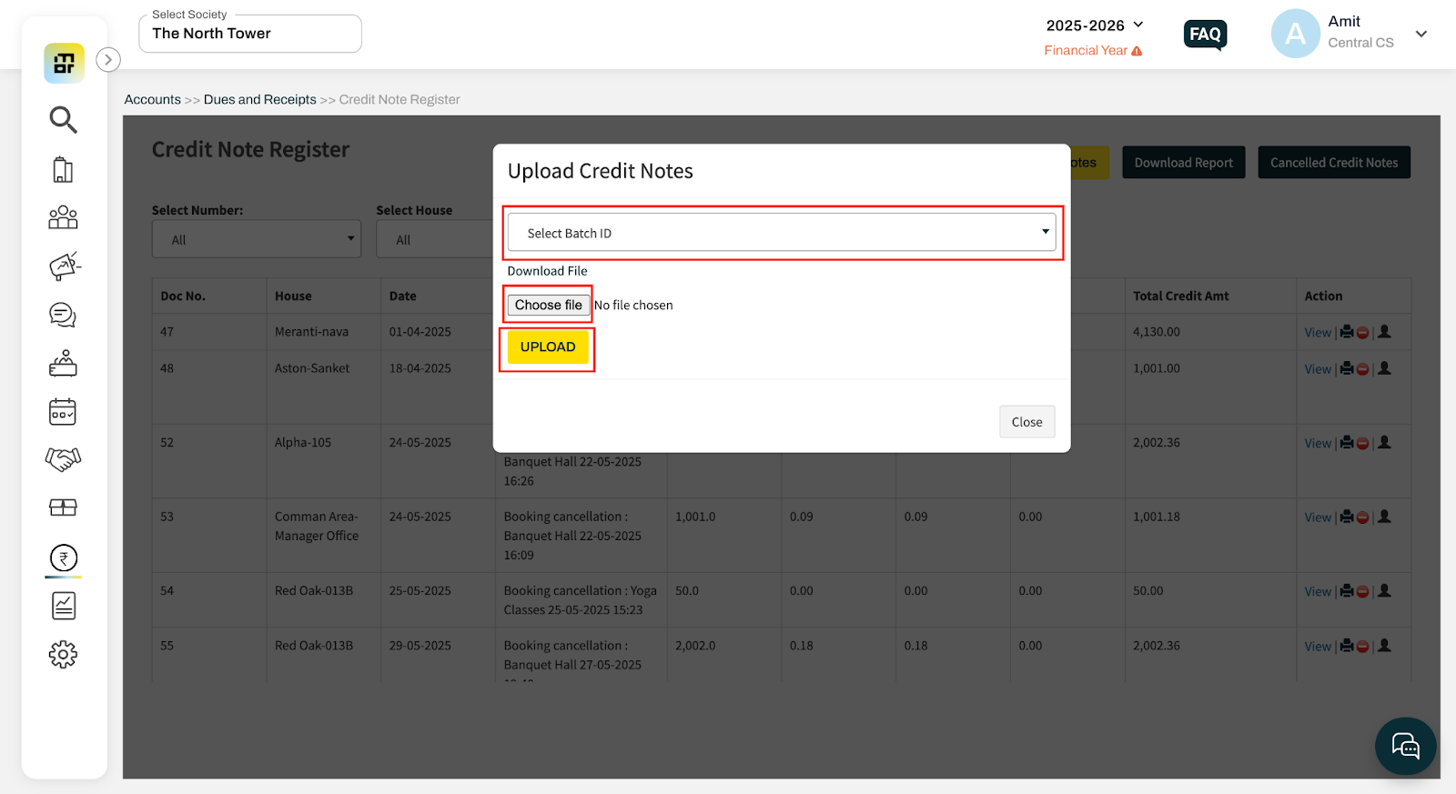 Click on Choose File, select the updated file, and upload it to issue credit notes in bulk.