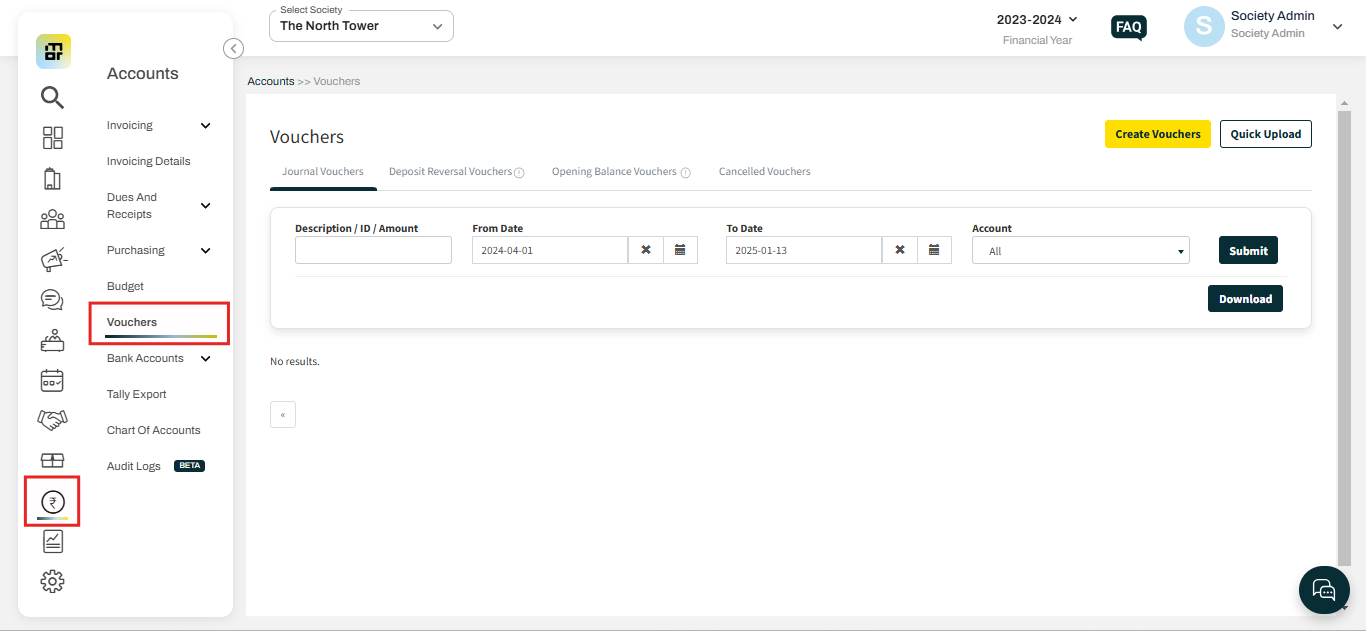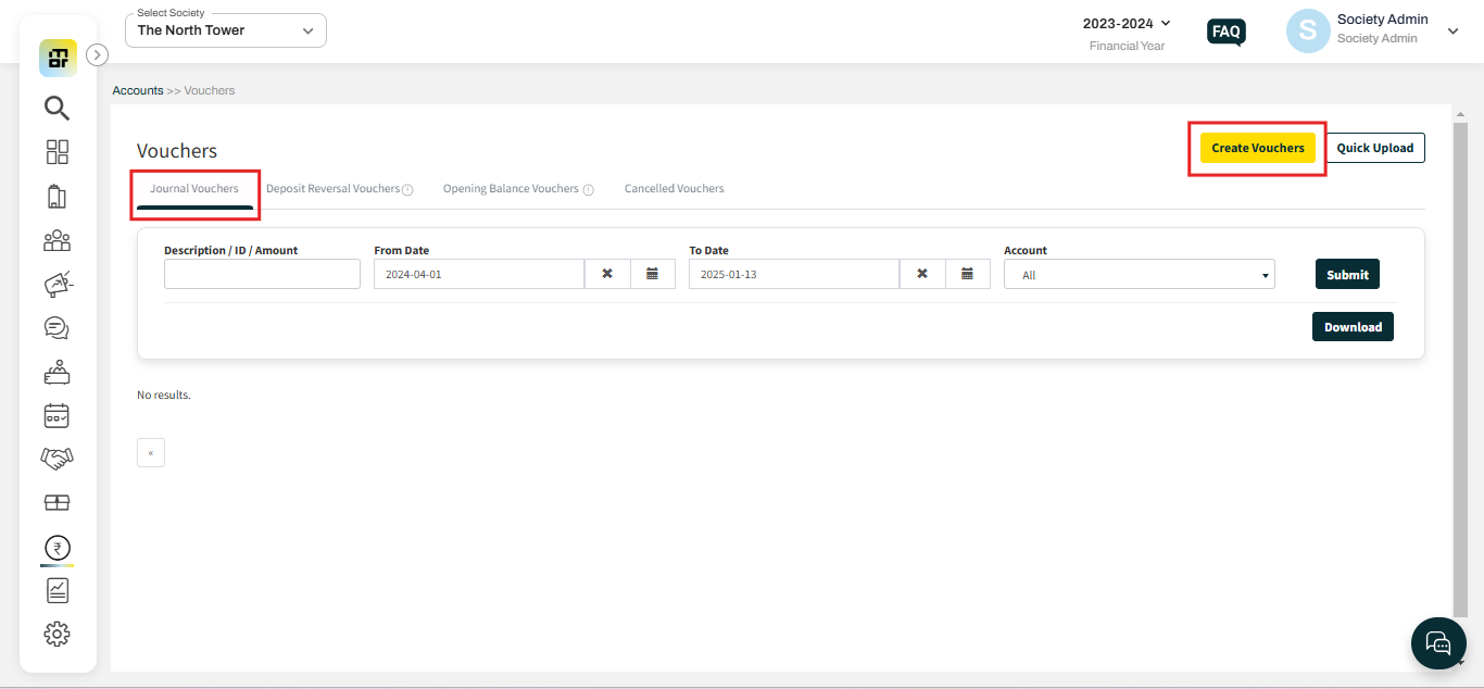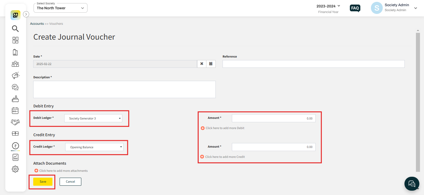 Please follow the below steps to Add a Journal Voucher.