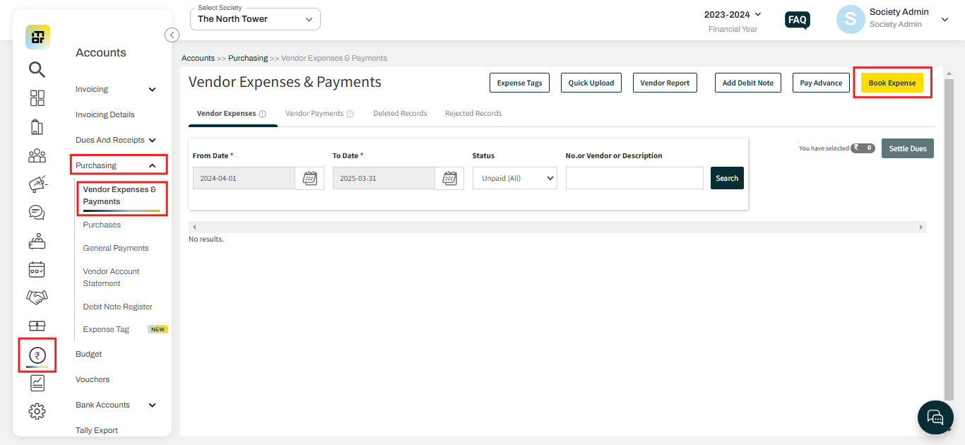 1. Go to Accounts and select Vendor Expenses & Payments under Purchases. Then select Add Book Expense.