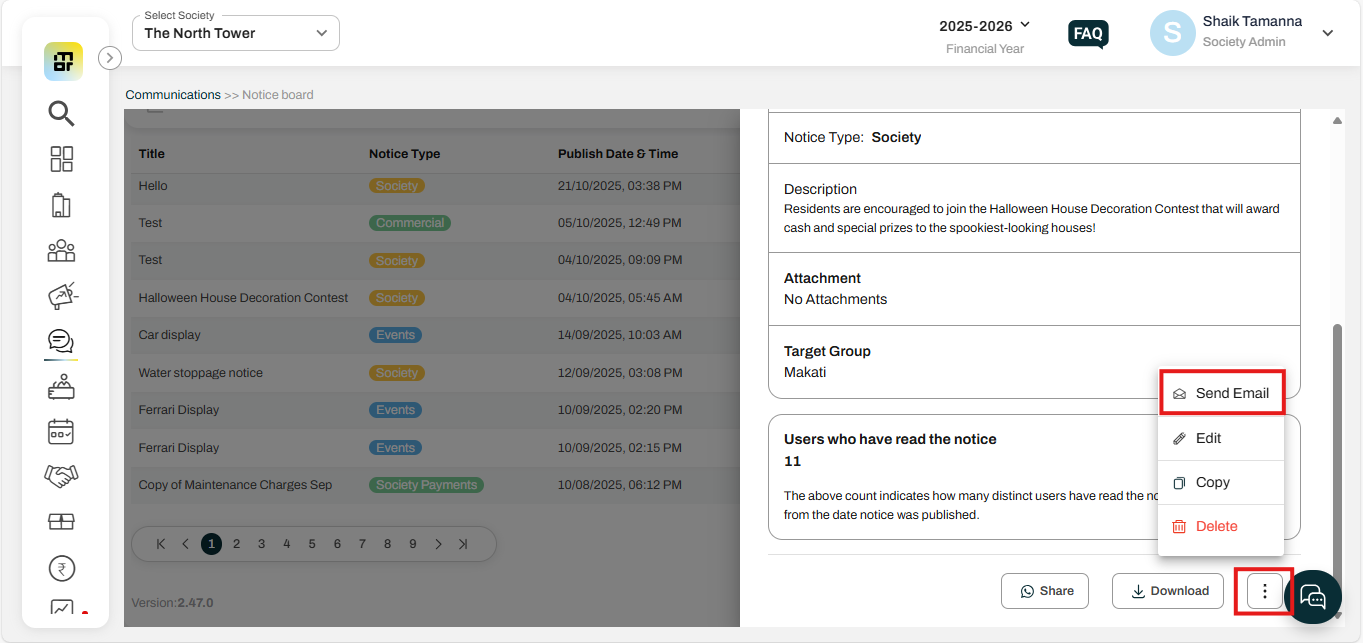 Whether it’s a maintenance update or a community announcement, notices ensure timely communication with residents. Mygate allows you to send these notices as emails.
