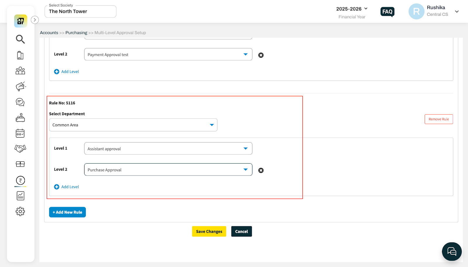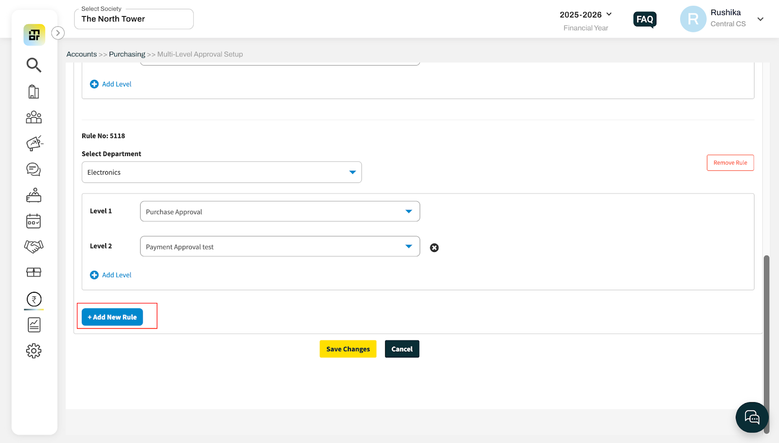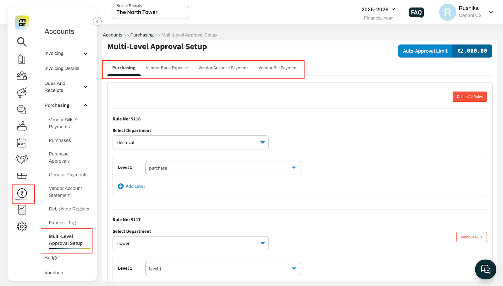 Go to Accounts → Purchasing → Multi-Level Approval Setup.